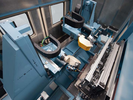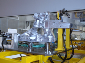 MAKA詳細(xì)分析了美鋁和法拉利公司的需求,開發(fā)了CM27t數(shù)控加工中心。該設(shè)備具有高精度旋轉(zhuǎn)夾具,可360度旋轉(zhuǎn)且翻轉(zhuǎn)后無(wú)需再定位;雙工作臺(tái)實(shí)現(xiàn)工件裝載與加工站交替工作,8m*3m尺寸的高速升降門與高動(dòng)態(tài)驅(qū)動(dòng)裝置配合使用,保證快速切換工作臺(tái)時(shí)的安全性;帶有51個(gè)刀位的鏈?zhǔn)降稁?kù)在加工區(qū)域外,可通過(guò)數(shù)控到達(dá)主軸,確保最短的換刀時(shí)間。